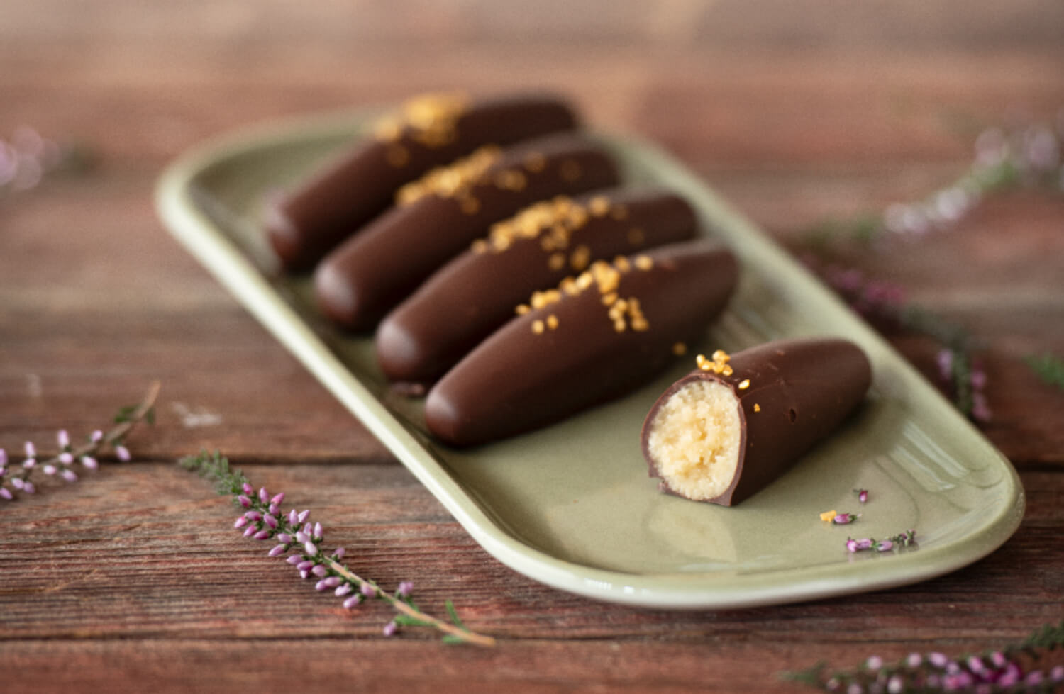Håndlaget marsipanbrød med Lybec marsipan, dyppet